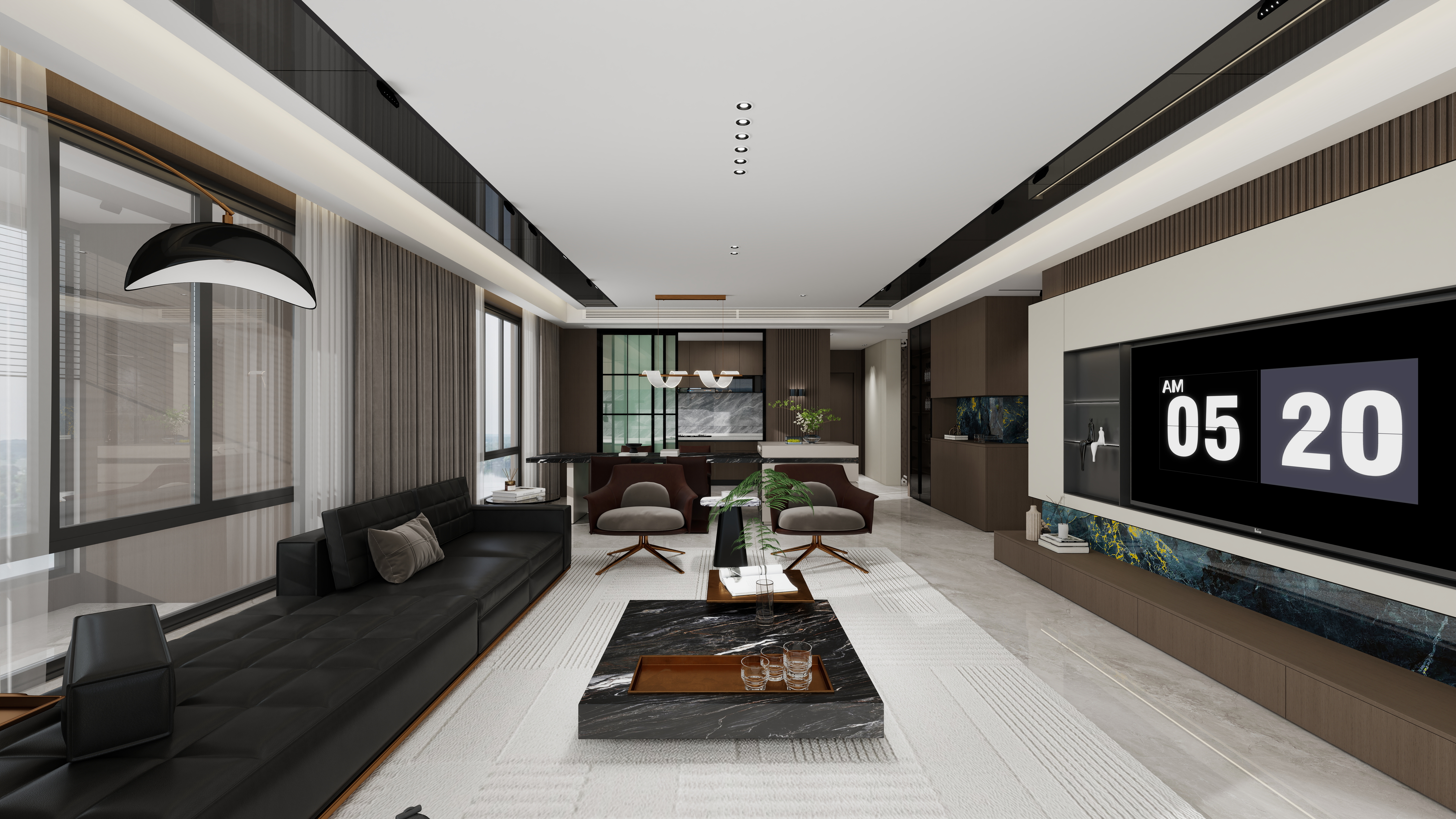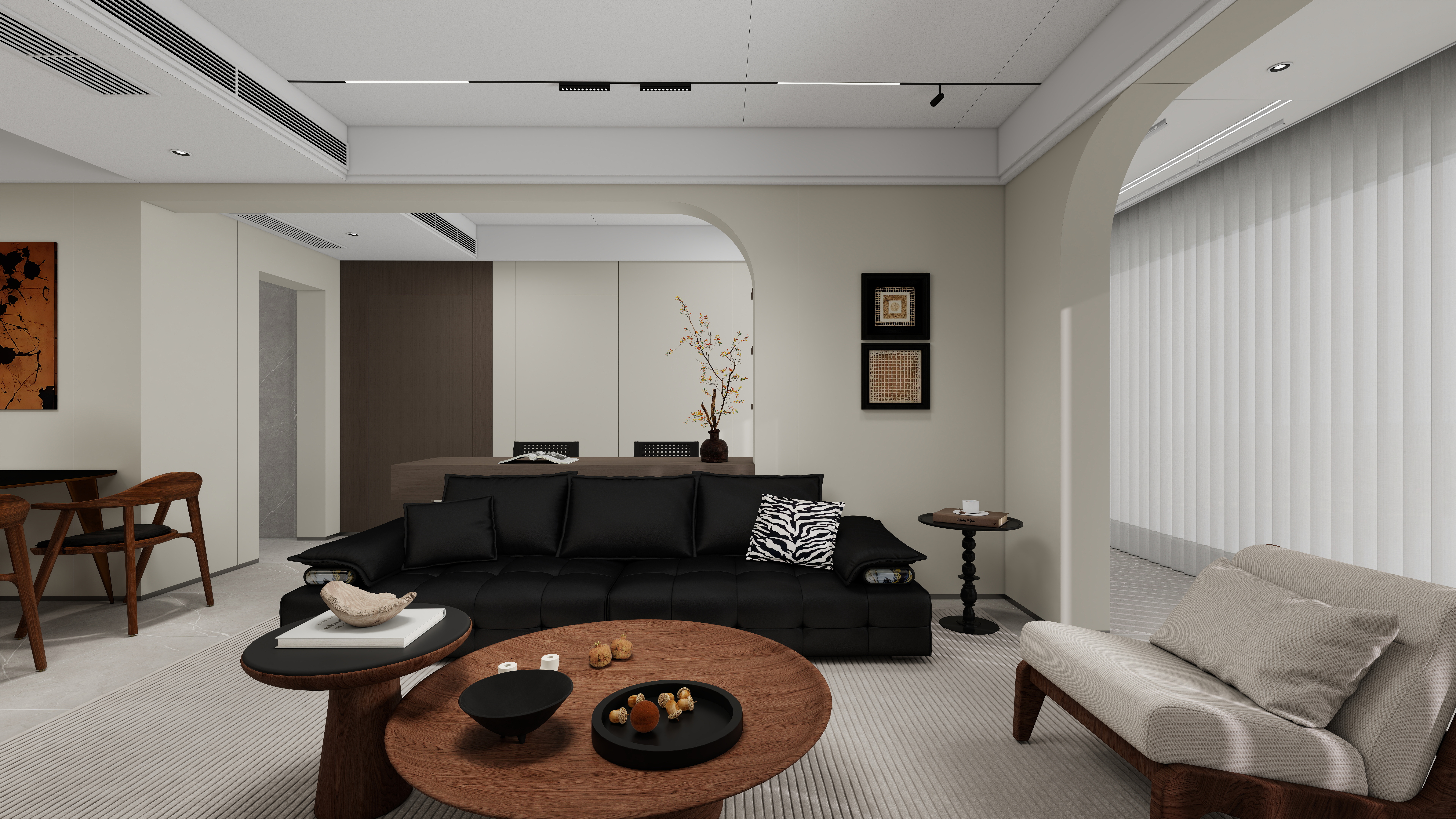 本案以170㎡的敞闊空間為畫卷,執(zhí)筆隱奢極簡的設(shè)計哲學(xué),為您勾勒一處身心皆安的品質(zhì)居所。我們秉持健康環(huán)保理念,通過頂、墻、門、柜的一體化整合設(shè)計,摒棄冗余裝飾,讓家的每一寸空間都流淌著舒適與寧靜。步入一體化客餐陽區(qū)域,視野豁然開朗。電視背景墻與沙發(fā)背景墻對向而立,與微復(fù)式結(jié)構(gòu)共同撐起大宅氣度。陽臺休閑區(qū)巧妙嵌入,無論是午后品茗還是與友麻將,皆成忙里偷閑的愜意時光。L型轉(zhuǎn)角廚房動線流暢,與圓桌餐廳形成完美互動;餐廳一側(cè),半開放式奢石餐邊柜成為視覺焦點,天然的紋理與溫潤的木色相映成趣,在簡約中暗藏奢華質(zhì)感。私密區(qū)域同樣匠心獨運。兒童房將書桌、衣柜與睡眠區(qū)一體化定制,功能完備且渾然天成,助力孩子專注學(xué)習與健康成長。主臥與次臥延續(xù)靜謐格調(diào),一門到頂?shù)囊鹿翊钆錁O簡拉手設(shè)計,線條利落純粹,在擴大收納空間的同時,極大提升了視覺上的延伸感,營造出令人放松的睡眠環(huán)境。全案通過高級木飾面、定制系統(tǒng)柜與奢石元素的極致組合,不止于視覺上的高級大氣,更致力于為您打造一個從身體到心靈都倍感健康、安舒與從容的理想家。more +11月